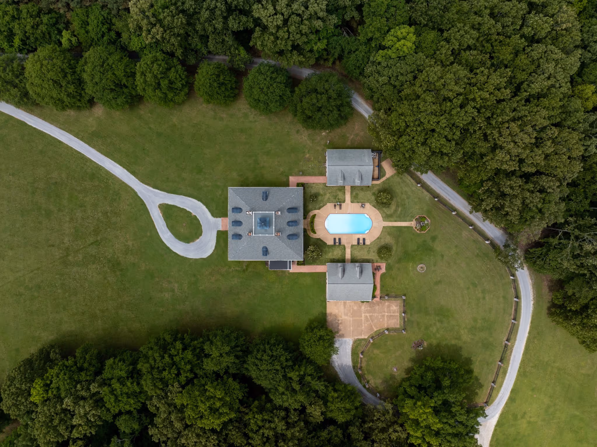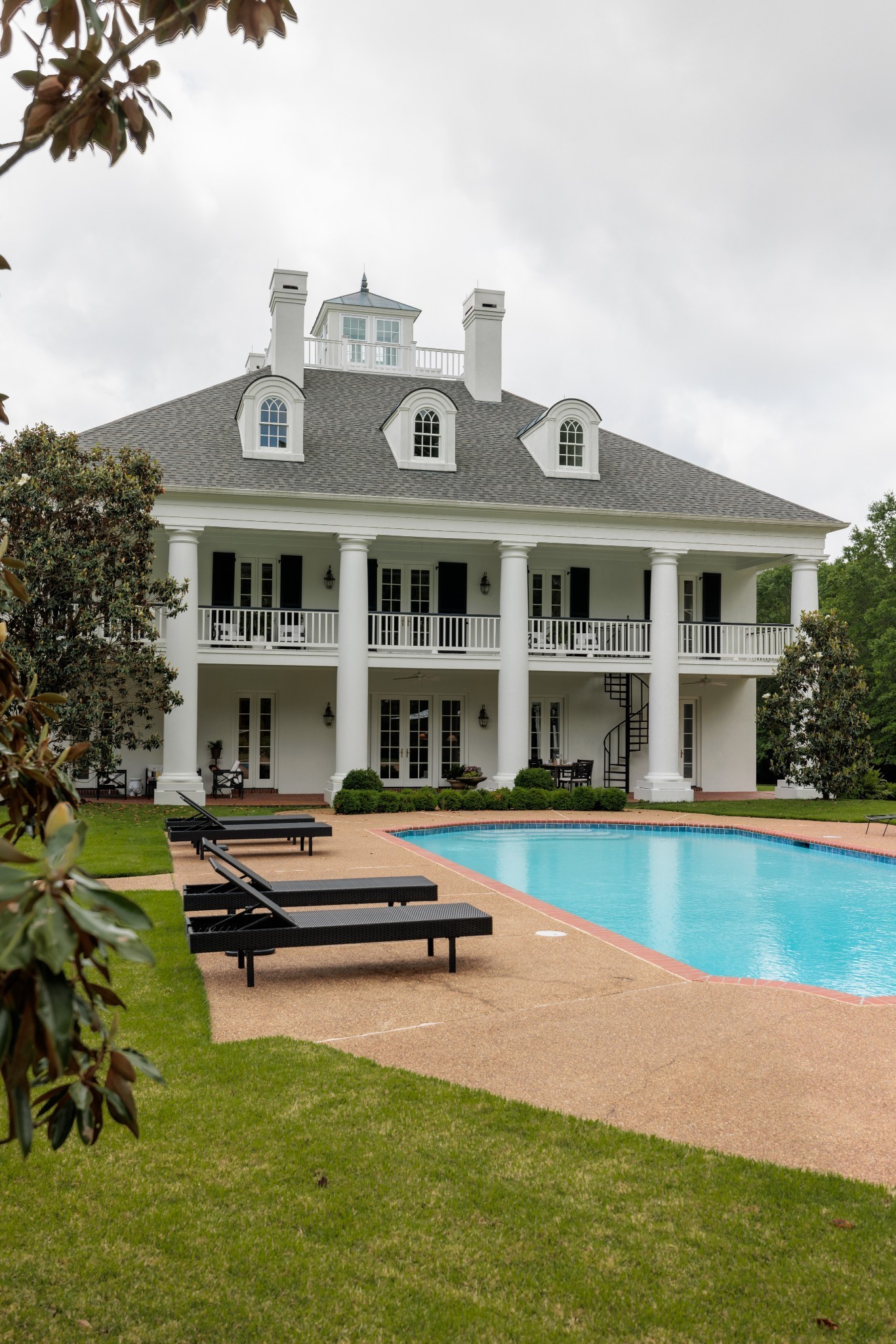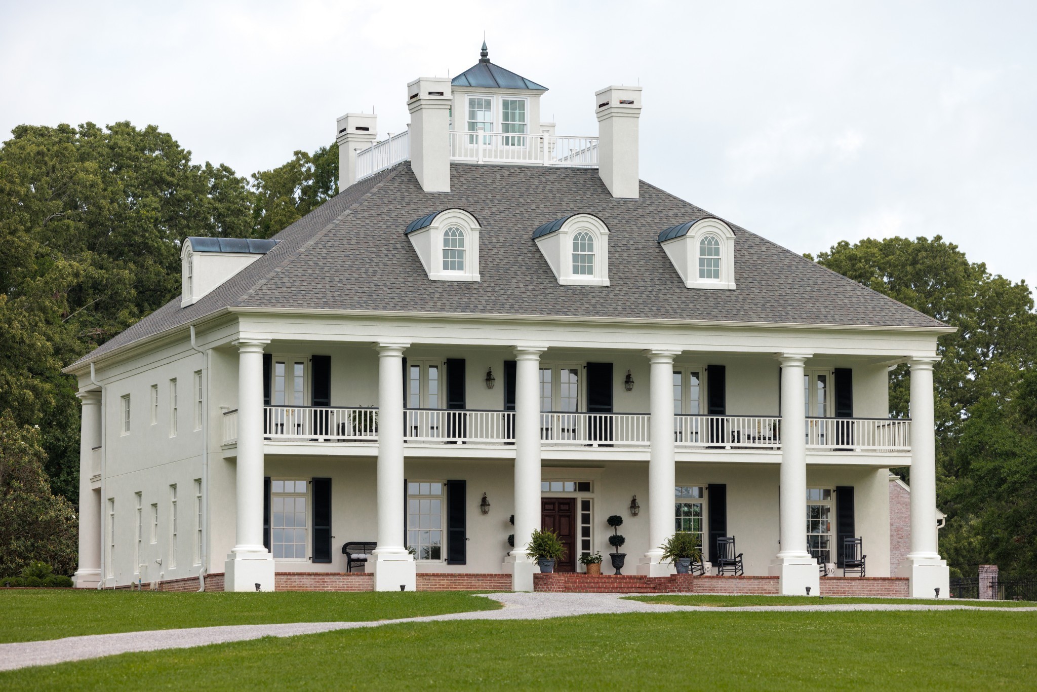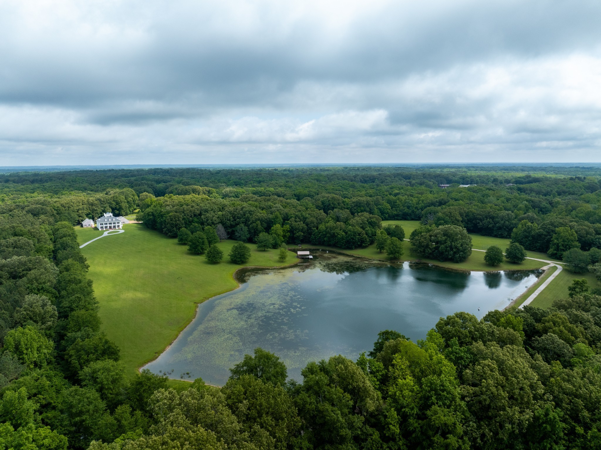 The grand entrance of this 137 acre estate begins the journey down the ¾ mile long treelined drive which meanders through multiple fields, past a covered bridge, and skirts the two acre pond and the fully stocked 8 acre lake. The trees unveil views of the stunning 8,500 sq ft antebellum home that is modeled after the Houmas House, known as the crown jewel of Louisiana’s River Road. Home boasts 6 bedrooms, 6.5 baths and four 11×65 porches framed out by grand columns providing sunrise and sunset views. Access to the pool area from bottom porch and from spiral staircase from second floor porch. The gunite pool is bookended by the 3 car detached garage and the 1600 sq ft pool house. The pool house features a full bar and living room downstairs and billiards room upstairs. Outbuildings on the grounds include a 60×100 party barn with stage for entertaining, full bath and living quarters, a 30×40 farm shop, 50×70 pole barn and 60×70 shop with full bath overlooking the lake and covered dock.